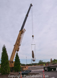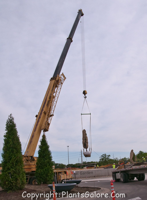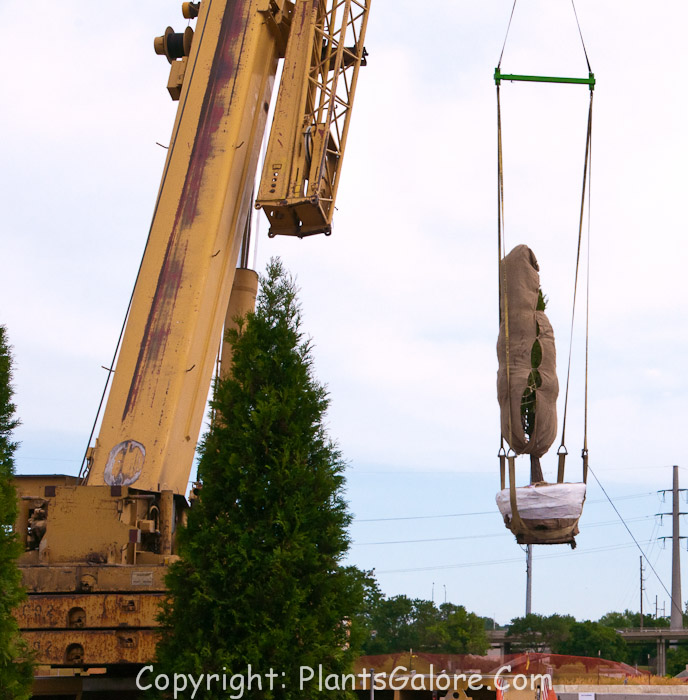 The cranes were lifting large trees into place and the