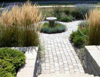 combinations of trees, shrubs, perennials, retaining walls,