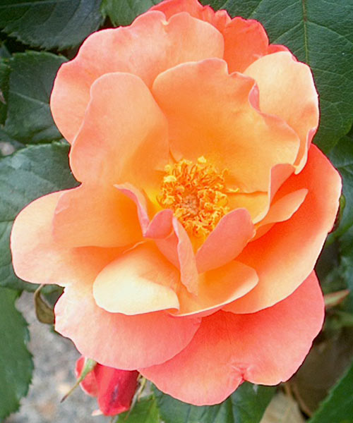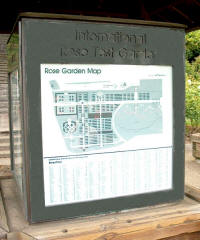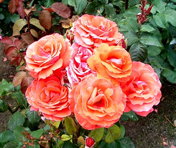 of roses and some companion plants placed on the slope of a