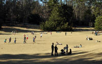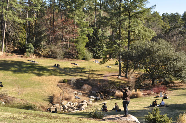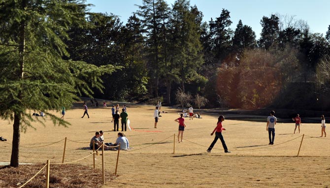 of students were enjoying the open spaces in the park-like